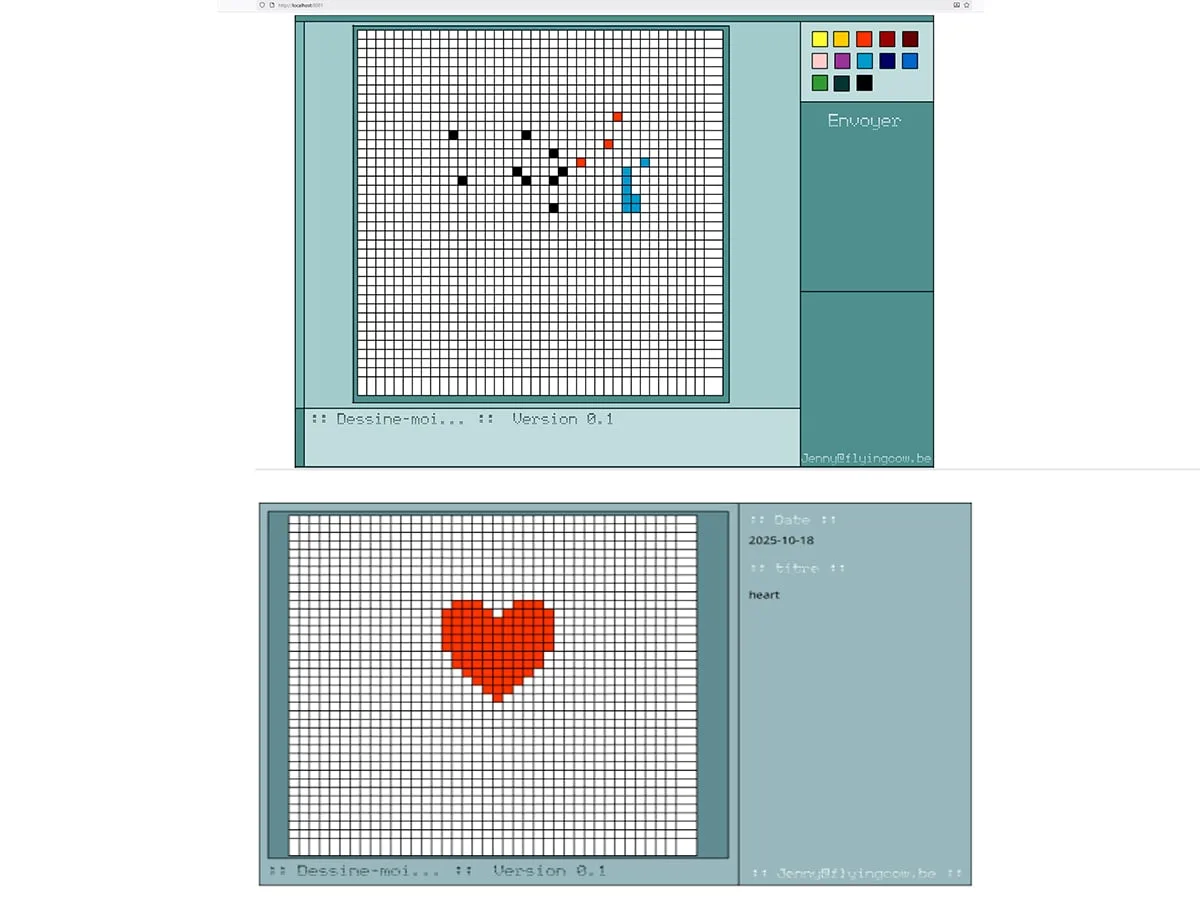 One in particular was a little tool I had called “Dessine?” (“Draw?”): you’d make a drawing by coloring squares in the browser, add a message, and it would create an e-card stored in the database, with a unique link to send to someone.